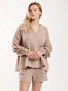 Блуза с V-образным вырезом из 100% хлопка. Необычная форма рукавов «фонарики» добавляет романтичности образу. В комплекте с шортами арт. 4602613 получается легкий расслабленный летний образ, который подойдет как для города, так и для пляжного отдыха.