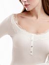 Элегантное боди с рукавами, выполненное из мягкого модала, сочетает в себе утонченный дизайн и практичность. Глубокий вырез и кружево по линии декольте добавляют ноту чувственности, а планка с пуговицами создает стильный акцент