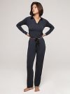 Брюки прямые с карманами, пояс на резинке с декоративными завязками из шелка.