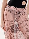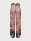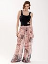 Брюки с принтом имеют свободный крой и фиксируются с помощью кулиски на талии.
