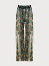 Брюки с принтом имеют свободный крой и фиксируются с помощью кулиски на талии.