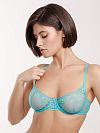 Мягкий бюстгальтер сшит мастерами марки из цветочного полупрозрачного кружева. Модель с регулируемыми бретелями застегивается на два крючка сзади.