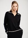 Джемпер- поло выполнен из шерсти мериноса, которая прошла процесс мерсеризации. За счет этого шерсть стала более блестящей и прочной.