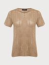 Джемпер с коротким рукавом из вискозы в золотом и сером цветах с необычным узором. Можно собрать комплект с брюками арт. S25.PT075.9000.800 и шортами арт. S25.SR024.9000.800.