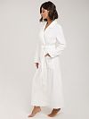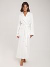 Длинный халат выполнен из хлопка премиального качества, для прочности в состав материала добавлены волокна тонкого полиэстера. В качестве декора выступают отложной воротник, накладные карманы с кантом и рукава с манжетами.