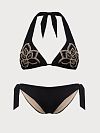 Для изготовления черного бра с мягкими чашками мастера марки использовали легкую микрофибру. Изделие из такого материала быстро сохнет, поэтому не раздражает кожу. Модель украшена вышивкой. Посадка регулируется завязками на спине и лентами на шее.