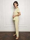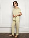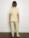 Пижама (брюки и футболка) не сковывает движения, тонкий микромодал не вызывает аллергию, хорошо пропускает воздух и быстро отводит влагу.Футболка с круглым вырезом дополнена отделкой из кружева по нижнему краю. Посадка брюк регулируется эластичным поясом.