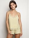 Пижама топ и шорты из тонкого микромодала прекрасно сядет на любую фигуру. Данный комплект не сковывает движения и отлично подойдет для сна. Топ и шорты дополнены отделкой из кружева, придающей изделию романтический образ.