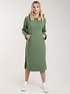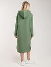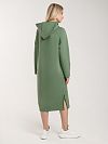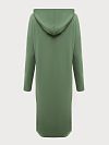 Прямой силуэт платья с рукавами реглан обеспечивают идеальную посадку на разных типах фигур, длина платье миди создаёт стильный вид, а карманы и капюшон служат дополнительным украшением данной модели.