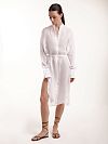 Элегантное платье-рубашка из рамии — натуральной ткани из крапивы. Модель создает стройный силуэт и подчеркивает утонченный вкус.