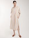 Платье длинное – это отличный вариант для прогулок и пляжного отдыха. Материал на основе мягкой вискозы и свободный крой с боковыми разрезами не сковывают движения, поэтому в изделии будет комфортно в течение дня. Изюминкой данного изделия является использование ультрамодного принта полоска, который визуально стройнит.