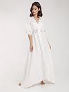 Платье длинное - это отличный вариант для прогулок и пляжного отдыха. Материал на основе прочного льна обеспечивает эффективную циркуляцию воздуха, а свободный крой не сковывает движения, поэтому в изделии будет комфортно в течение дня. Изделие с рукавами миди декорировано многочисленными кружевными вставками в тон.