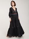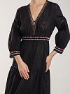 Платье длинное - это отличный вариант для прогулок и пляжного отдыха. Материал на основе легкого хлопка обеспечивает эффективную циркуляцию воздуха, а свободный крой от груди не сковывает движения, поэтому в изделии будет комфортно в течение дня. Изделие с рукавами ¾ в викторианском стиле добавит вашему образу романтичности и женственности. Платье выполнено в базовом черном цвете. Изюминкой изделия является контрастная вышивка на манжетах и под грудью.