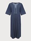 Платье длинное с V-образным вырезом – это отличный вариант на каждый день. Материал на основе дышащего хлопка и свободный крой с широкими рукавами не сковывают движения, поэтому в изделии будет комфортно в течение дня. Отличный вариант для больших размеров.
