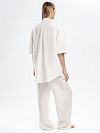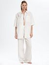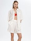 Рубашка изо льна с укороченными рукавами и карманами на груди. Удлиненный и свободный крой – актуальный вариант на лето и весну.