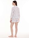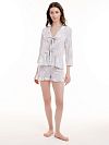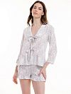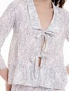 Рубашка из легкого хлопка с нежным цветочным принтом. Прямой укороченный крой, отложной воротничок, воланы и завязки- все это добавляет романтичности в домашний образ .