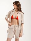 Шорты из премиального льна LEAN на резинке и завязками имеют свободный крой и карманы для большего удобства в носке.