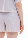 Короткие шорты на кулиске для комфортной посадки. Карманы и нижний край декорированы кружевом