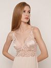 Сорочка сшита из струящегося тонкого модала. Шелковистый приятный на ощупь материал быстро впитывает и отводит влагу от тела, а также нежно облегает фигуру, не натирая и не впиваясь. Зона декольте декорирована изысканным кружевом с шелковыми вставками. Данное изделие поможет создать легкий романтический образ и подчеркнуть фигуру.
