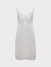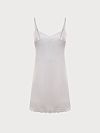 Сорочка мини из натурального эластичного шелка с драпировкой на груди. Сорочка декорирована кружевом по нижнему срезу, что добавляет еще большей романтичности.