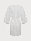 Туника-кимоно из хлопка, декорированная цветами по срезу рукавов. Можно носить нараспашку с шортами из данной коллекции и купальником или использовать поясок, который идет в комплекте.