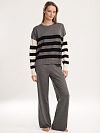 Широкие брюки из итальянской трикотажной вискозы имеют прямой силуэт, пояс резинку с кулиской и металлическими эглетами.
