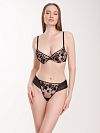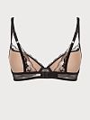 Бюстгальтер push-up разработан на бежевой чашке, что визуально создает эффект её отсутствия, бретели на спине украшены крылышками из вышитой сетки.