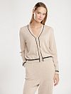 Кардиган выполнен из шерсти мериноса, которая прошла процесс мерсеризации. За счет этого шерсть стала более блестящей и прочной. Кардиган имеет приталенный силуэт. Контрастная линия для придания более классического стиля.