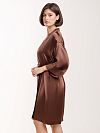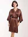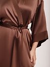 Короткий халат из шелка в ягодно-розовом цвете . Изделие фиксируется при помощи длинного пояса-ленты.