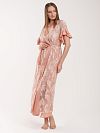 Длинный халат из кружева с коротким рукавом. Рукав украшен рюшами.