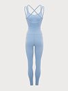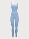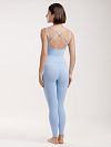 Комбинезон с открытой спиной и перекрещивающимися бретелями, завышенной линией талии, двухслойным поясом, что обеспечивает дополнительный подтягивающий эффект. Низ изделия с открытым срезом.