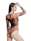 Данная модель купальника обеспечивает отличную поддержку груди, так как происходит круговое натяжение в данной области. Ткань достаточно упругая, поэтому при правильно подобранном размере получится эффект компрессионного белья. Образ получается подтянутым и подчёркиваются линии тела.