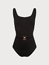 Купальник слитный из эластичной фактурной микрофибры. Круглый вырез и наличие встроенных вкладышей подчеркнут линию декольте. Купальник декорирован съемным поясом с ракушкой, который эффектно выделяет талию.
