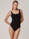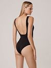 Купальник слитный с красивой линией декольте, подчёркнутой контрастным кантом и открытой спиной для идеального загара. Вертикальные рельефы на купальнике визуально удлиняют силуэт, что позволяет выглядеть стройнее.