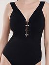 Решительно элегантная, эта модель украшена дополнительной завязкой, заменяющей запонки. Ее глубокий V-образный вырез на спине и шов, подчеркивающий талию, привносят изысканный и оригинальный штрих. Нестареющий нефритовый купальник BONNIE, эксклюзивная подпись Pain de Sucre, подходит для всех типов телосложения и обеспечивает комфорт и поддержку, особенно для пышной груди, благодаря широким бретелям