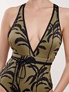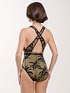 Слитный купальник с глубоким вырезом - съемные чашки, бретели на спине крест на крест, фурнитура золотых оттенков, классический вырез бедра, съемный пояс-верёвка.