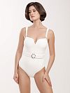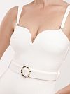 Слитный купальник с поясом – широкие бретели, вырез декольте в форме сердца, боковые косточки, классический вырез бедра, декоративные кольца из смолы.