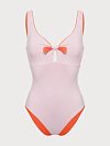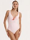 Двусторонний купальник слитный с мягкой чашкой и узлом спереди, стандартный вырез бедра, глубокий вырез декольте.