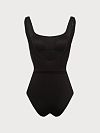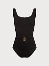 Купальник слитный из эластичной фактурной микрофибры. Круглый вырез и наличие встроенных вкладышей подчеркнут линию декольте. Купальник декорирован съемным поясом с ракушкой, который эффектно выделяет талию.
