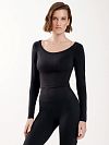Топ с длинным рукавом с конструктивными рельефами и функциональной резинкой по низу изделия. Рукав с открытым срезом, что полностью исключает ощущение дискомфорта во время тренировок.