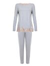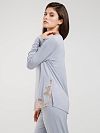 Пижама отвечает основным требованиям, предъявляемым к одежде для дома: крой не сковывает движения, тонкое легкое джерси на основе шелковистого модала не вызывает аллергию, хорошо пропускает воздух и быстро отводит влагу. Футболка с O-образным вырезом и длинными рукавами дополнена отделкой из роскошной вышивки. Посадка брюк регулируется эластичным поясом