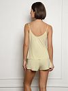 Пижама топ и шорты из тонкого микромодала прекрасно сядет на любую фигуру. Данный комплект не сковывает движения и отлично подойдет для сна. Топ и шорты дополнены отделкой из кружева, придающей изделию романтический образ.