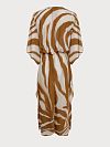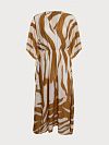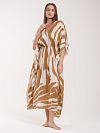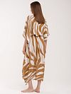Платье кафтан из шелковистой вискозы имеет оверсайз крой, с V-образным вырезом и кулиской на талии для акцентирования талии. Дизайнеры марки вдохновились африканской антилопой орикс и пустынными песками. Кафтан идеально подходит для особых случаев на отдыхе, его можно использовать как на выход, так и на пляж.