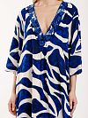 Платье-туника из мягкой вискозы с элегантным V-образным вырезом, декорированным вышивкой и бисером. Модель имеет длину чуть ниже колена и расклешённые рукава длиной 7/8, создающие изящный и воздушный силуэт.