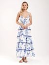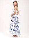 Длинное платье-сарафан на тонких бретелях из вискозы. Каждый ярус подола украшен кружевом. Женственное, легкое, нарядное – незаменимая вещь любого летнего гардероба.