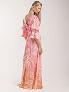 Длинное платье из эко вискозы с оригинальным принтом градиентом не оставит вас незамеченной. Роскошный вырез в зоне декольте и эффектные пуговицы застежки. Рукава на кулисках, сзади резинка гофре для хорошей посадки.