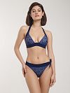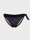 Плавки-слип выполнены из плотной эластичной микрофибры. Полиамид в составе материала отвечает за прочность и не дает изделию деформироваться и тускнеть со временем, а за счет волокон эластана модель оптимально облегает фигуру. Модель прекрасно сочетается с купальным лифом из данной коллекции. Декор в виде ажурного золотого орнамента непременно сделает образ ярким и оригинальным.