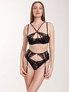 Пояс эффектно дополнит и завершит темпераментный образ. Выполнен из флорального кружева в сочетании с нежнейшим атласом и мягкой сеткой. Фигурные вырезы по бокам, эластичные стрепы на спинке. Регулируемые пажи для чулок.
