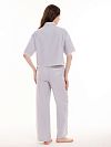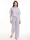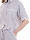 Рубашка из хлопка в тонкую серую полоску. Свободный укороченный крой, планка на пуговицах, короткий рукав до локтя и отложной воротничок, по нижнему срезу рубашки и на рукавах декорирована узким кружевом цвета айвори.