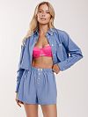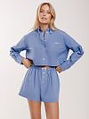 Синие шорты выполнены в мужском стиле. Современный и удобный дизайн. Шорты изготовлены из 100% органического хлопка. Эластичный пояс для надежной посадки
